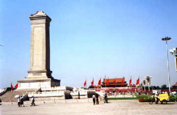 Der Platz vor dem Tian'anmen-Tor ist mit einer Pfläche von 400 000 Quadratmetern der größte Platz der Welt. Während der Ming- und Qing-Zeit war das Tian'anmen-Tor der Haupteingang zur Kaiserstadt. Auf dem Torturm wurden damals kaiserliche Erlässe verkündet.