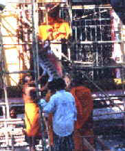 In Loas ist der Buddhismus so arm, daß die Mönche selbst zu Handwerkszeug greifen müssen und ihre Tempel zu renovieren