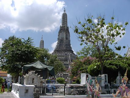 Der fingerförmige Turm - "Prang" - ist mit 79m Höhe das Wahrzeichen Bangkoks.