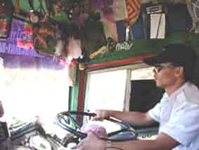 Busfahrt Die Fahrerplätze sind meist sehr bunt ausgestattet